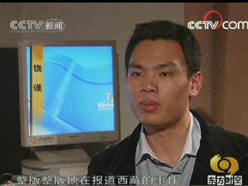 饶谨:他们每天都看到外面的报纸整版整版地在报道西藏的事件,而且用的都是不实的图片。当时我感觉也是非常气愤,因为我知道媒体不可避免地会带有一些偏向性,但是不管你立场如何,你不能无中生有,捏造事实。