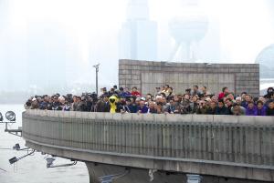 今天一早,市民纷纷涌到外滩,目送百年老桥离去