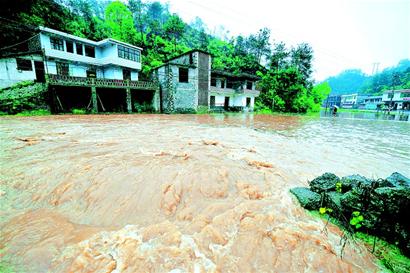 恩施市龙凤坝镇三河村的居民住宅被山洪围困 新华社发