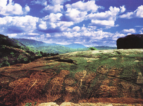 在南北长22.1米、东西宽15米的一块混合花岗岩构成的覆钵状山坡上,分布着三组线条宽而浅,粗率劲直,作风原始,断面呈“V”形,面壁光滑,以石器敲凿磨制而成的岩画。这是我国迄今发现的最古老时代岩画,是东南沿海地区首次发现的岩画,是惟一反映农业部落原始崇拜内容的岩画,距今约4000年。著名考古学家苏秉琦先生称之为我国最早的一部天书。