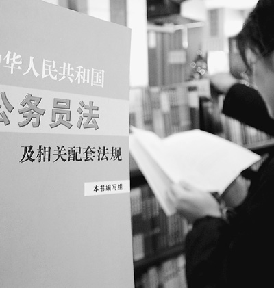 湖北宜昌一读者在书店查看《公务员法及相关配套法规》读本。吴明摄