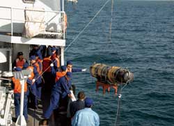 我们跟随科研人员登上猎扫雷舰,这个外表看似安然无恙的“庞然大物”,已遭受了严重“内伤”:舰体被震裂出几个裂隙,海水正顺着裂隙汩汩往舱里冒。甲板上,焊接牢固的舰炮己被“连根拔起”;曾经灵活自如的扫雷具,横七竖八地“趴”在地上,动弹不得…… 但让科研人员无比兴奋的是:他们采取了新抗冲击措施的测量设备性能正常,相关数据库完好无损……