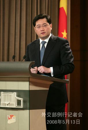 中新网5月13日电 外交部网站消息,5月13日下午,中国外交部发言人秦刚举行例行记者会,就四川汶川严重地震灾害、朝鲜半岛核问题等答问。