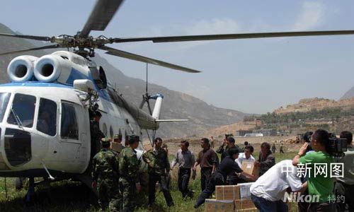据介绍,这架直升机主要是勘查地形,顺便带来了10箱药品。今天准备空投5架次,计划在2-3天内向陇南市武都灾区空投13到15架次,完成15吨左右救灾物资的空投,其中有2吨药品、10吨食品、3吨其他生活用品。(完)