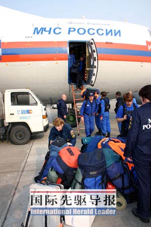 作为中国政府首次接受的国际紧急救援队,5月16日一天里,来自日本、俄罗斯、新加坡、韩国四个国家的队伍相继抵达成都,并在第一时间奔赴各个灾区。在这片刚刚经受了大地震洗礼的土地上,他们将用自己的技术,帮助中国人搜索那些至今仍掩埋在废墟里的兄弟姐妹。