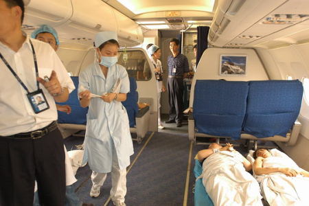 民航局组织航空公司改装飞机向外转运伤员(图)