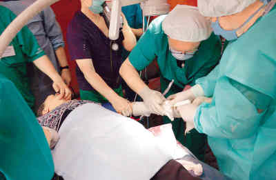 5月21日,俄罗斯医生为黄文芬老人做手术。曾 硕摄
