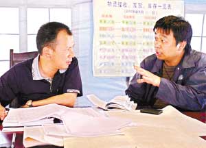 青川县县长陈正永(左)接受记者采访。 顾展旭 摄