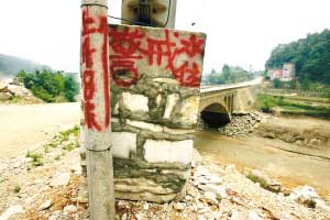 震后十多天,这位乡干部对数字的敏感性越来越高,在他的脑海中,村里上游唐家山堰塞湖每一点细微的变化都关乎着幸存者的性命。“唐家山坝高110多米,前两天领导跟我们开会的时候说,现在水深已经达到90多米,每天还在升高3米左右。最坏的情况是完全溃坝,整个绵阳110多万人都要受到影响。”韩国君说,虽然水流夹杂泥石到村里还要40多分钟,但为了万无一失,村里已经设立了三个观察哨所,一旦洪水来临,将拉响警报,让还留在家里的村民赶紧上山避险。