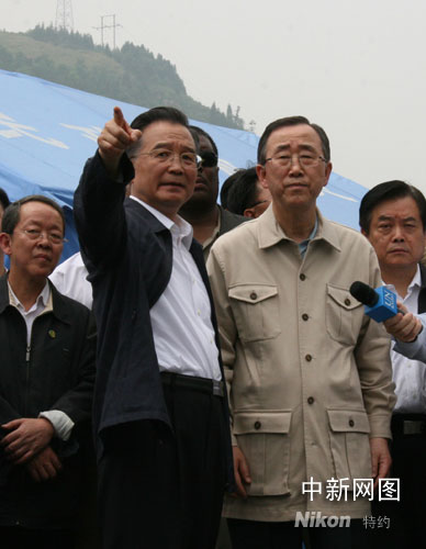 快讯:温家宝与联合国秘书长在汶川映秀举行会谈