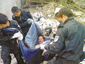 中新网5月25日电 据中央电视台报道,23日下午4点左右,上海赴川救援特警在绵竹市广济镇较为偏僻的中心村,发现了一名老人被压在倒塌的房屋废墟里。队员们迅速组织附近三十名警力共同展开施救,冒着危险徒手搬去沉重的横梁、瓦砾,终于成功解救了老人。这距离地震发生已经将近266个小时了。