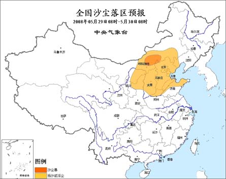 中新网5月29日电 中央气象台今天早晨六点钟继续发布沙尘天气预报: