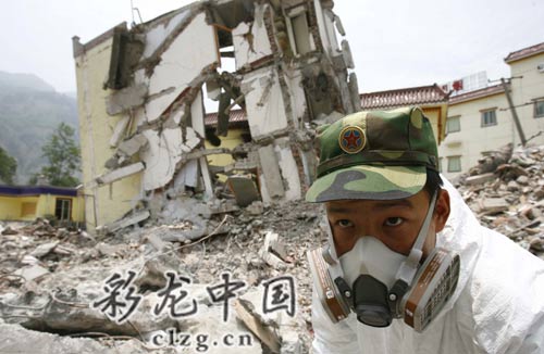一队队身着防化服的救援人员在街头四处消毒撒药;一声惊天动地的巨响震撼山谷……26日,汶川大地震震中映秀镇,平静而繁忙。平静是因为大部分居民已难觅踪影,往日的繁华街道已成废墟,繁忙是因为来自全国的部队正在紧张地清理废墟、喷洒疾控防疫药剂。虽然25日青川发生的6.4级余震波及到此,但对于留在帐篷里的居民来说,这已不能让他们惊慌失措。