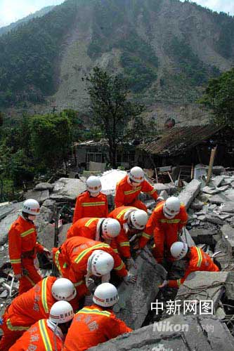 ——山东省消防总队官兵徒步进入汶川映秀镇抢险记