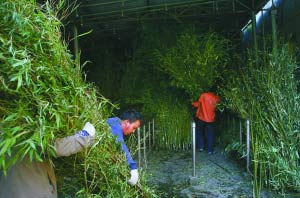 周命华20多年来一直从事竹子的采购,他说,竹源的选择首先要避开野生熊猫的栖息地,周围不能有污染的企业、矿山,竹子只能是两三年生的,一年的竹子砍掉可惜,年龄再大又太老了,熊猫不爱吃,而且,竹子必须挑着砍,不能成片成片的砍掉,以便恢复。这样,一座山头的竹子,基本上半年左右的时间,便不能再提供给大熊猫了。
