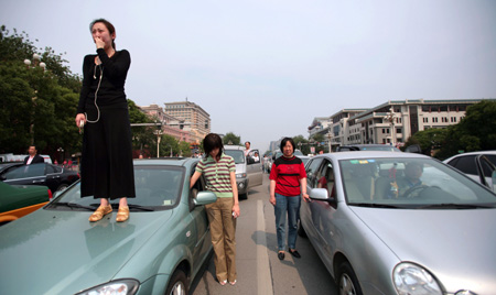 5月19日下午14时28分,北京长安街上,女孩在无声地哭泣。 法新社