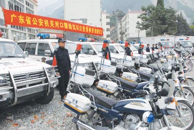 6月13日,广东对口援助汶川大批急需警用物资抵川