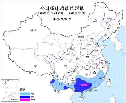 中新网6月16日电 据问天网消息,中央气象台今天上午十点钟继续发布暴雨预报: