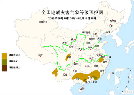 预计,16日晚上到17日白天,川西高原东北部、云南西部、安徽南部、广西中北部、江西南部、福建西南部以及广东东部和西北部的部分地区发生地质灾害的可能性较大。其中,广西东部和广东东部的局部地区发生滑坡、泥石流等地质灾害的可能性大,需加强防范。