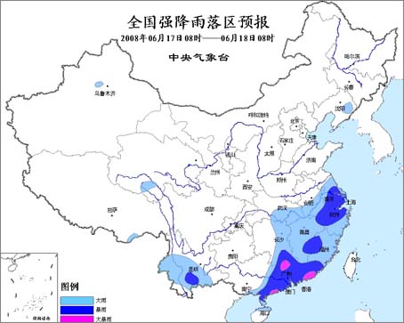 中新网6月17日电 据问天网消息,中央气象台今天早晨六点钟继续发布暴雨预报: