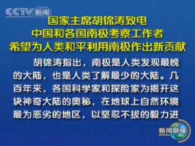 胡锦涛强调,各种自然灾害使我们更加深刻地认识到,开展海洋和极地考察、探索地球科学奥秘具有十分重大的意义。今年是人类历史上第四个国际极地年,各国科学家正在开展有史以来最大规模的南极科学探索。希望南极考察队员们不断取得更大成绩,为人类和平利用南极作出新的贡献。