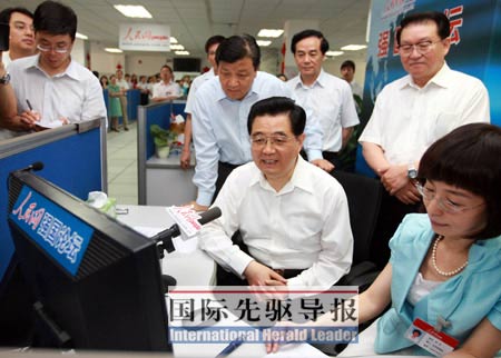 6月20日上午9点12分,人民网“强国论坛”率先发出预告帖:好消息!胡锦涛总书记通过强国论坛同网友们交流。此帖随即被国内各大网站转载,短短几分钟内,“胡锦涛即将与网友在线交流的消息”就高高挂在各大新闻网站醒目位置,蜂拥而至的访问导致强国论坛一度出现拥堵。《国际先驱导报》记者在一个小时内数次尝试登陆,均无法打开网页或留言系统提示错误。