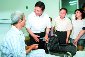 昨天,市委书记刘淇将带到灾区的100架轮椅送给灾区受伤群众。记者 方 非摄
