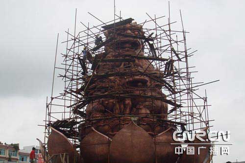 记者日前在贵州省黔西县采访时看到,当地政府巨资打造的巨幅全铜狮像现身十字街头。这是黔西县今年“亮丽工程”的一部分。