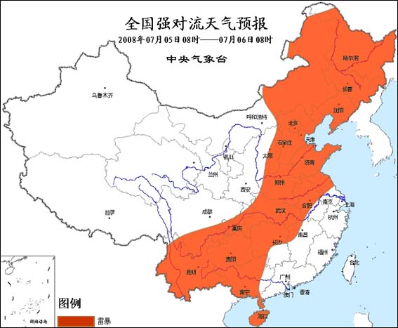 中新网7月5日电 据问天网消息:中央气象台5日6时继续发布强对流天气预报。