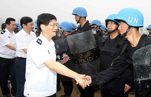 中新网7月10日电 据公安部网站消息,日前,国务委员、公安部部长孟建柱在中国维和警察培训中心观看了即将赴海地执行维和任务的中国第七支维和警察防暴队战术汇报演练时强调,要不断提高国际执法能力和水平,进一步扩大中国在海地民众中的影响,为维护海地社会稳定,推进和谐世界建设作出新贡献。