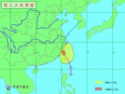 预计,强风暴中心将以每小时15~20公里的速度向西北偏北方向移动,逐渐向浙闽沿海靠近,强度维持或略有减弱,并将于18日下午到19日早晨在浙江温岭到福建连江一带沿海再次登陆。
