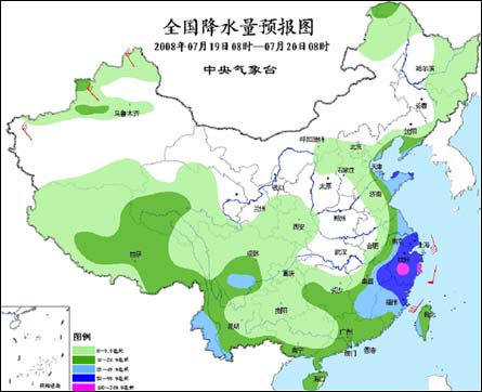 受其影响,今天白天到夜间,台湾以东洋面、台湾海峡、东海大部、黄海中南部、福建中北部沿海、浙江沿海、江苏中南部沿海、长江口区将有6-8级大风,部分海域阵风可达9-10级;福建、浙江、江西南部和东部、广东东北部、江苏南部以及上海等地有暴雨,其中,浙江中南部、福建北部等地的部分地区有大暴雨。