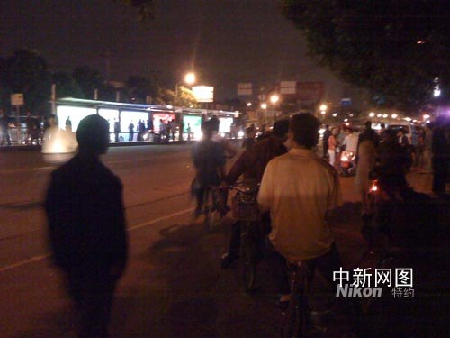 图为发生事故的现场,事故公交车被快速拖走后,还有数百名市民在围观。王林 摄