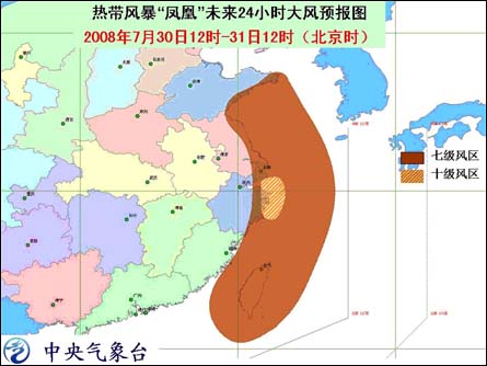 受“凤凰”和副热带高压的共同影响,今天中午到明天中午,黄海中部和南部、东海大部、台湾以东洋面、台湾海峡、巴士海峡、巴林塘海峡、南海东北部、台湾沿海、福建沿海、浙江沿海、江苏沿海、山东半岛南部沿海、长江口区、杭州湾将有7-8级大风,浙江北部沿海的风力可达9-11级;浙江北部、上海、江苏等地一般有5-6级风,上述地区的江河湖面将有7-8级阵风。
