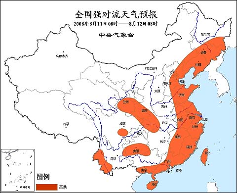 中新网8月11日电 据中国天气网消息,中央气象台今晨6时继续发布强对流天气预报: