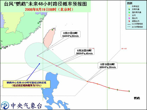台风“鹦鹉”未来48小时路径概率预报图
