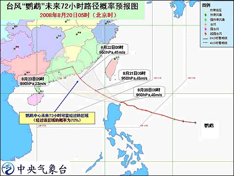 受其影响,今天白天到夜间,巴士海峡、巴林塘海峡、台湾省南部沿海、台湾东南部海面、南海东北部海面将有到7-10级大风,“鹦鹉”中心经过的附近海面风力可达11-14级;台湾南部的部分地区将有大到暴雨。