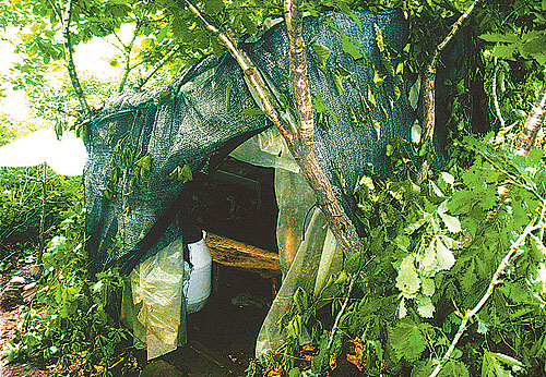 利用树枝搭建帐篷。