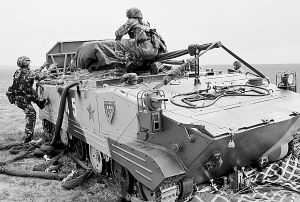 刚一落地的伞兵不待收伞,便手持重装寻找器准确定位各自的重装位置,并奔跑而去,立即展开解脱重装工作!此时,对面山头上的反空降装甲部队已浩浩荡荡向下俯冲,对尚未集结的空降部队形成围歼。危急关头,伞兵战车启动开来,与先期进入的战车集结成战斗群,向“敌”发起猛烈攻击。记者掐表计算,此次伞降、解脱、集结,形成建制作战能力的时间比以往缩短了一半。