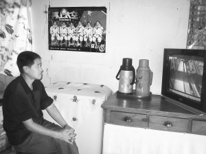 翟志强在收看中央电视台的“神七问天”节目 姜燕 摄