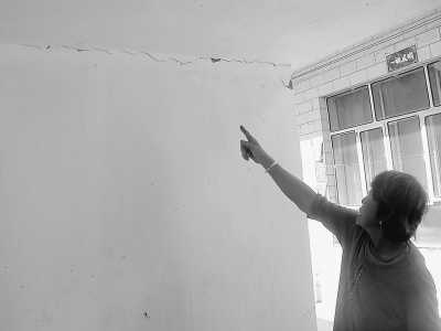 好景不长,新房很快也出现一道道裂缝,村民惶恐不安。在新村采访时,秦文清、武须信、武旭忠等几位村民争先恐后地拉记者去自己家里看墙上的裂缝。村民王改女家的堂屋、卧室、厨房、卫生间,几乎每间房都有大大小小的裂缝,她说住着害怕,可又找不到避难的住所(见图①)。