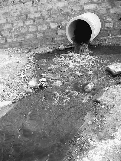 记者溯水而上,发现正在建设的陕煤集团神木柠条塔矿业有限公司,在龙泉村附近有一根直径约80厘米的大塑料管伸向河道,管子里哗哗地流着一股有浓烈异味的黑水(见图②),从正在打的矿井未经处理就排到河道,与上游流下来的水汇合时有一条明显的线,可谓泾渭分明。