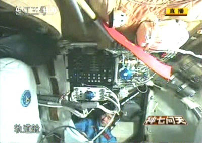 中新网北京九月二十六日电(记者 齐彬)北京时间九月二十六日十点二十分,“神舟”七号航天员翟志刚和刘伯明开始在飞船轨道舱进行轨道舱状态检查和舱外航天服的组装与测试等工作。
