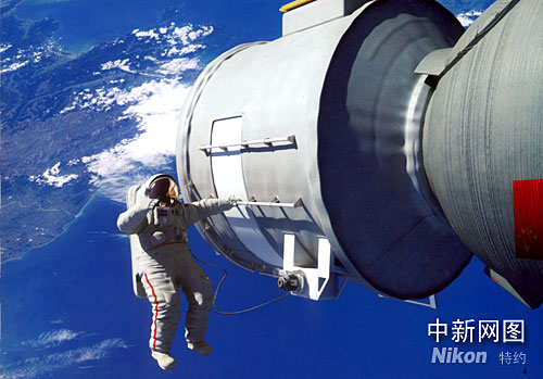 翟志刚身上所穿的中国自行研制的第一套“飞天”舱外航天服,也首次在茫茫太空中“亮相”。