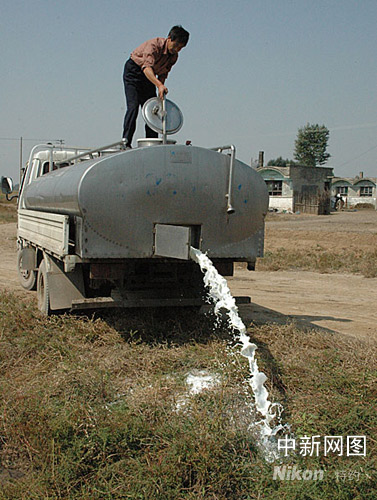 中新网9月29日电(武为民)“三鹿奶粉”事件发生后,山西奶业生产受到冲击。奶牛养殖大县山阴县,几个奶牛养殖大户此前将前一天挤的1万斤鲜奶倾倒在河沟里。白哗哗的牛奶汇成小河。因乳品企业停产整顿,收奶站负责人隐匿找不到,无耐的奶农只好将牛奶倒掉。