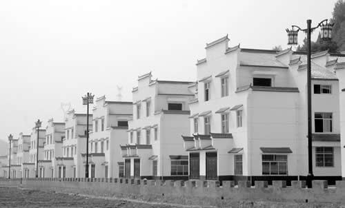 10月9日,记者来到位于商南县东三公里处的城关镇任家沟村,在村委会的西面,记者看到一排排气派宏伟的别墅依山而建,别墅外墙是白色的,每栋别墅分三层,一层有停车库,别墅门口正在修建绿化带,围栏边上的小水沟外是片开阔的茶园,放眼望去,别墅群修建得秀气而又不失气派。记者佯装买房,城关镇副书记兼任家沟村书记汪裕仓告诉记者,他们的别墅一共建了20套,已经卖出去了10套,每栋一共是282个平方,售价四十五万元,他自己买了一套,商南县一中总务处一位姓黄的副主任也买了一套。任家沟村一位姓吴的副书记称,省卫生厅的两个领导各买了一套。