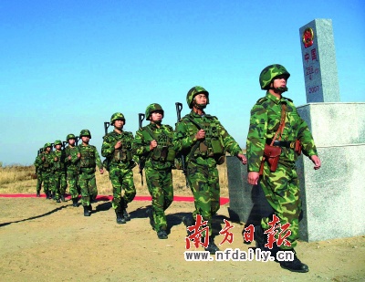 中国边防部队正式履行黑瞎子岛防务。新华社发