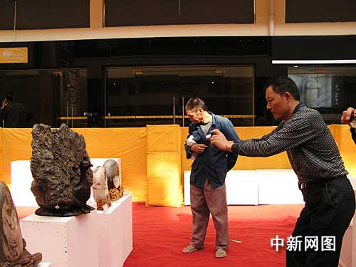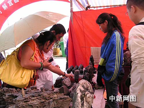 来自全国各地的数千件天然奇石亮相宜昌,图当地市民拍摄奇石 。 作 者:刘涛