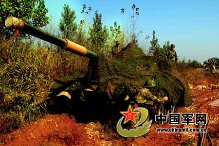 记者吸取前一次去指挥所的“教训”,分两路挨着河床两边仔细查找。最终发现,他们竟然化整为零,巧妙地利用地形地物和植被,把坦克和装甲车分散隐蔽,人员都住车肚子底下。在这一大片营地里,看不到以往演习中整齐划一的野营帐篷,也看不到红底白字的大幅标语和战士用子弹壳摆出的五角星。所有的帐篷和大型装备都依托地形,在伪装网和就地取材的柴草、树枝遮掩下,这儿一辆,那儿一辆,错落地隐入了山林中。