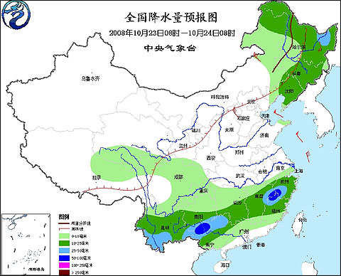 2008年10月23日8时—10月24日8时全国降水量预报图